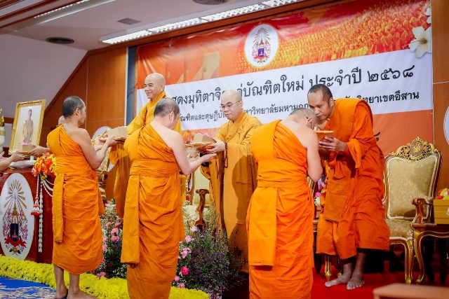 Phát biểu khai mạc tại buổi lễ Tốt nghiệp, Viện trưởng Đại học Mahamakut (Isan Campus) , TT.TS. Phrasutheevajiradhamma đã trân trọng gửi lời chào mừng đến các phái đoàn từ Việt Nam, Indonesia, Anh quốc, Srilanka và Lào. Thượng toạ Viện trưởng đã bày tỏ sự hoan nghênh lãnh đạo các phái đoàn quốc tế đã đến tham dự lễ tốt nghiệp và khai giảng hôm nay, đặc biệt là tham dự chương trình toạ đàm khoa học về chủ đề: “ Lý thuyết và thực hành thiền định”, và chủ đề: “Quản lý phát triển tổ chức hướng đến sự xuất sắc”. Đây là sự kiện có ý nghĩa quan trọng nằm trong chuỗi hoạt động lễ Tốt nghiệp và khai giảng của nhà trường, nhằm kết nối cộng đồng quốc tế, thúc đẩy nghiên cứu ứng dụng Phật học đồng thời khuyến khích các nghiên cứu sinh Tiến sĩ và Thạc sĩ tích cực tham gia các hoạt động giao lưu, học thuật quốc tế góp phần nâng cao chất lượng học tập và phát triển toàn diện. Năm 2025, Trường Đại học Mahamakut có 270 sinh viên tốt nghiệp các chuyên ngành: Tiến sĩ chuyên khoa Phật học, Tiến sĩ chuyên khoa Khoa Triết học và Phật giáo, Tiến sĩ chuyên khoa Chính trị học, Tiến sĩ chuyên khoa Quản lý giáo dục, Tiến sĩ chuyên khoa Ngôn ngữ Thái, Thạc sĩ và Cử nhân chuyên khoa Ngôn ngữ Thái, Thạc sĩ và Cử nhân chuyên khoa Quản lý giáo dục, Thạc sĩ và Cử nhân chuyên khoa Phật học, Thạc sĩ và Cử nhân chuyên khoa Công tác xã hội và phúc lợi xã hội, Thạc sĩ và Cử nhân chuyên khoa Chính trị học.