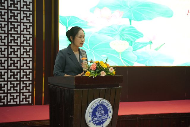 Tiếp đến, bà Trần Thị Minh Nga đã trực tiếp phổ biến các nội dung cơ bản của Luật Tín ngưỡng, Tôn giáo, đồng thời khái quát thực trạng hoạt động Phật giáo trên cả nước, với phạm vi hiện diện rộng khắp, có tính phổ quát cao và giữ vị trí quan trọng trong đời sống tinh thần của nhân dân. Bà nhấn mạnh, Giáo hội Phật giáo Việt Nam đã có nhiều đóng góp to lớn cho đất nước và xã hội, được Nhà nước ghi nhận bằng những phần thưởng cao quý, trong đó có Huân chương Hồ Chí Minh, đồng thời cho biết rằng năm 2025 được đánh giá là năm có nhiều dấu ấn của Phật giáo, với việc tổ chức thành công Đại lễ Vesak, thu hút sự quan tâm và niềm tin rất lớn của người dân, thể hiện qua số lượng hàng chục triệu lượt người tham gia các hoạt động chiêm bái xá lợi đức Phật, góp phần khẳng định vai trò tích cực của Phật giáo trong đời sống xã hội.